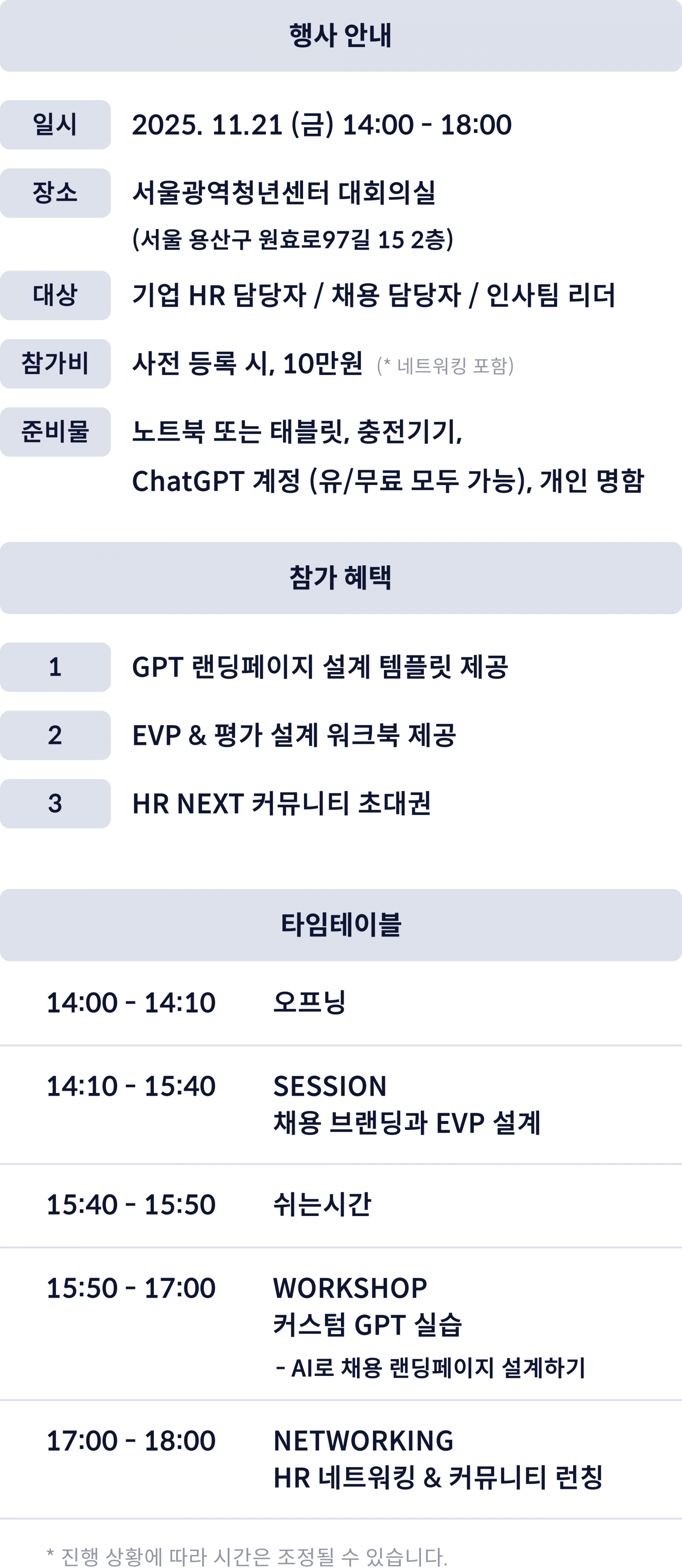 | ~ 세미나 시작 3일 전까지 | 11/17 ~ 11/18 | 결제 금액의 50% 환불 |
